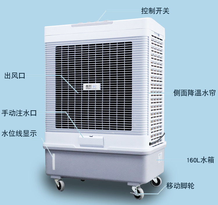 3:雷豹移动冷风机MFC6000是60L水箱,一体式水箱设计,一次加满相当于120瓶500ML矿泉水