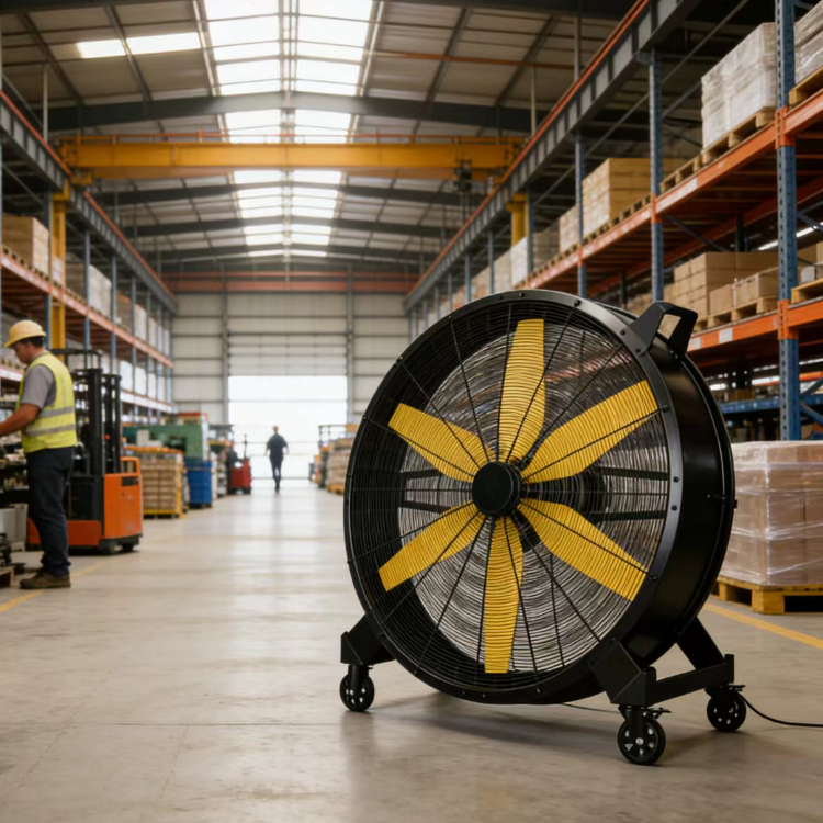 - 摆放位置:靠墙或通道边缘,避免阻挡叉车通行;扇叶朝向货架通道,推动空气沿通道流动,驱散热空气与堆积粉尘。
