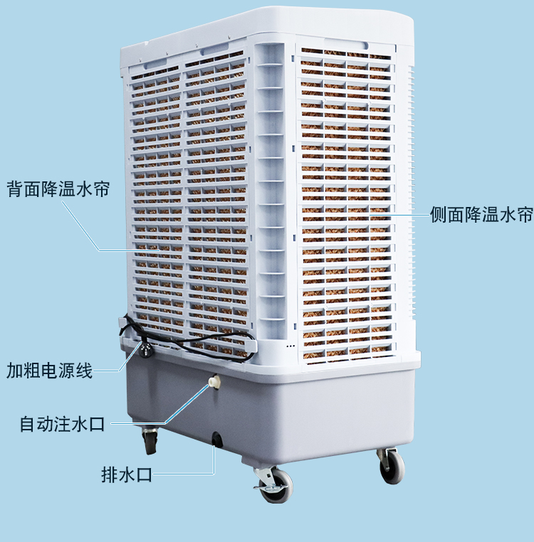 2:三面加厚湿帘,大面积吸风口,多重清新过滤三面冰凉降温