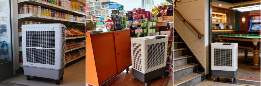 - 优势:无水滴、不打湿商品/餐具、静音、移动灵活