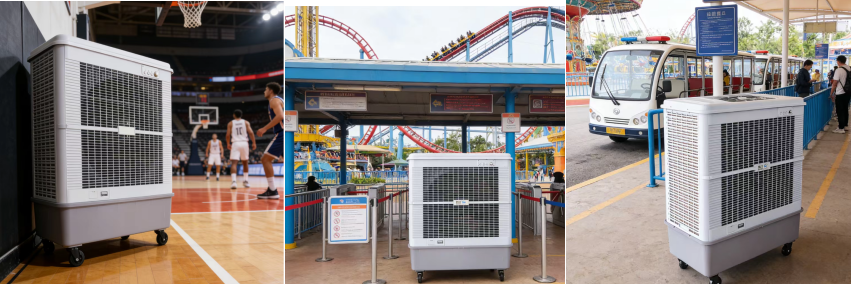 雷豹冷风机主打蒸发式降温+大风量+移动/安装灵活,核心覆盖工业、商用、农业、公共、民用五大领域,适配开放/半开放大空间与局部岗位降温 。